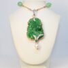 Con giada inciso a pesce e pavone e giada nera a rondellina e pallina.