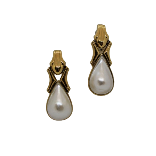 Orecchini in oro giallo 750 gr. 16.50 con perla mabe’ a goccia.