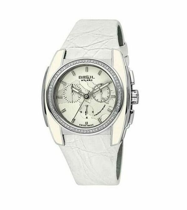 Cronografo al quarzo Ronda 5030D, Cassa in acciaio 41 mm, Lunetta in acciaio con 76 diamanti bianchi (ct. 0,608), Anse in acciaio con inserti in smalto, Vetro antiriflesso, Corona a vite con cabochon, Fondo serrato da 4 viti, Water resistant 10 atm, Cinturino in coccodrillo.